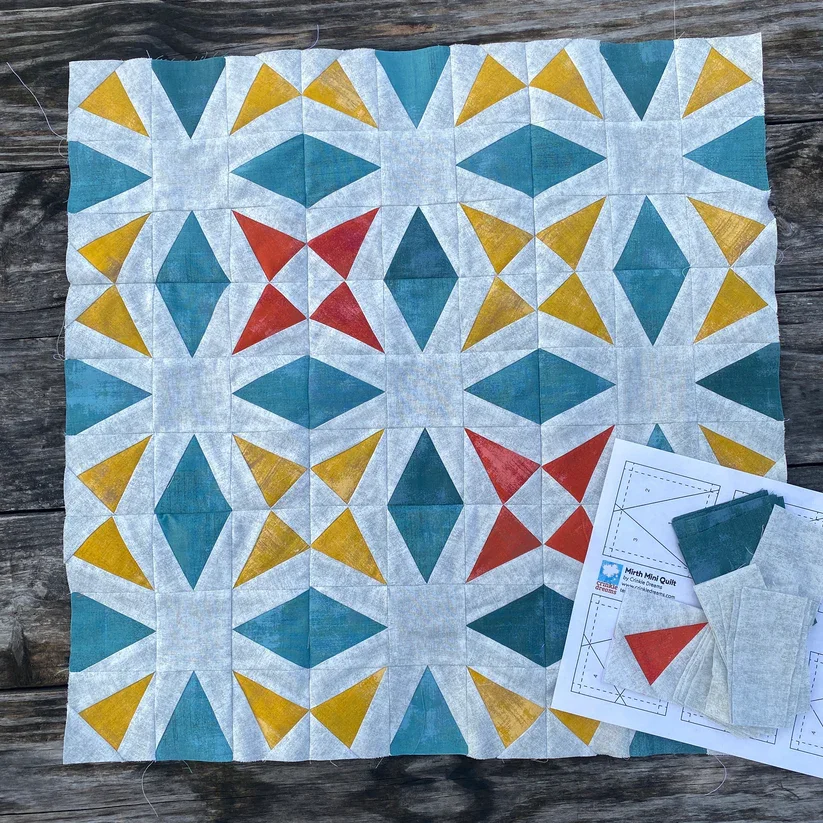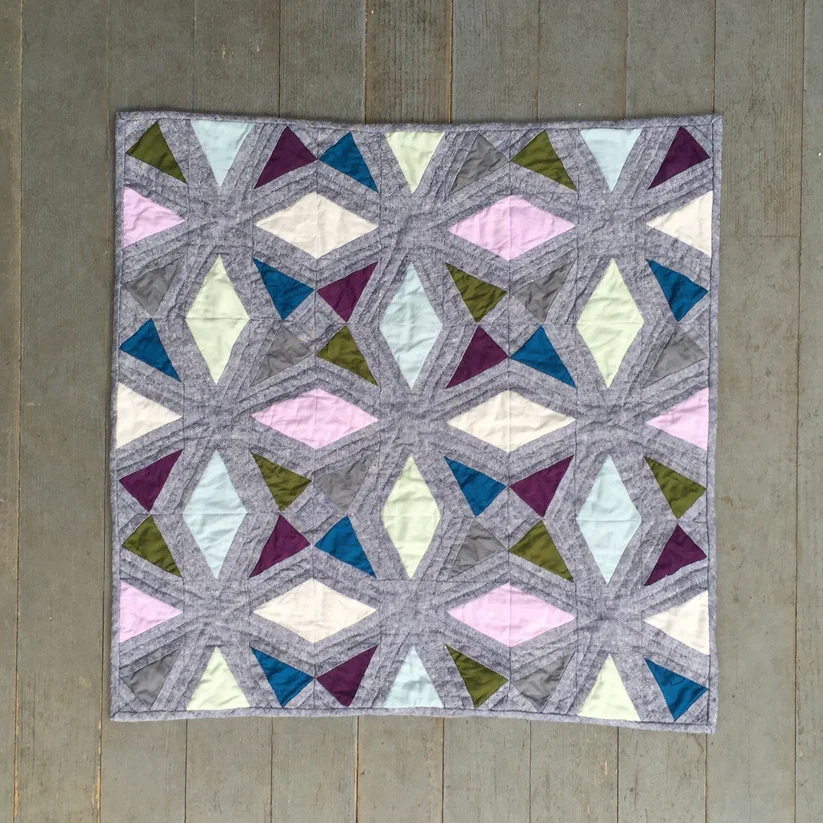 In this class you will learn all the basic skills of foundation paper piecing (FPP) while making the ultra-modern Mirth Quilt by designer Teresa Coates of Crinkle Dreams. The Mirth Quilt lends itself to many different color layouts and design options - no two quilts will be the same! Foundation paper piecing provides precise control over fabric placement, resulting in sharp, accurate quilt blocks and intricate designs and patterns that would be difficult to achieve with traditional piecing methods. While each FPP pattern is different, the basic steps and techniques are universal. Finished project is 27" square.
